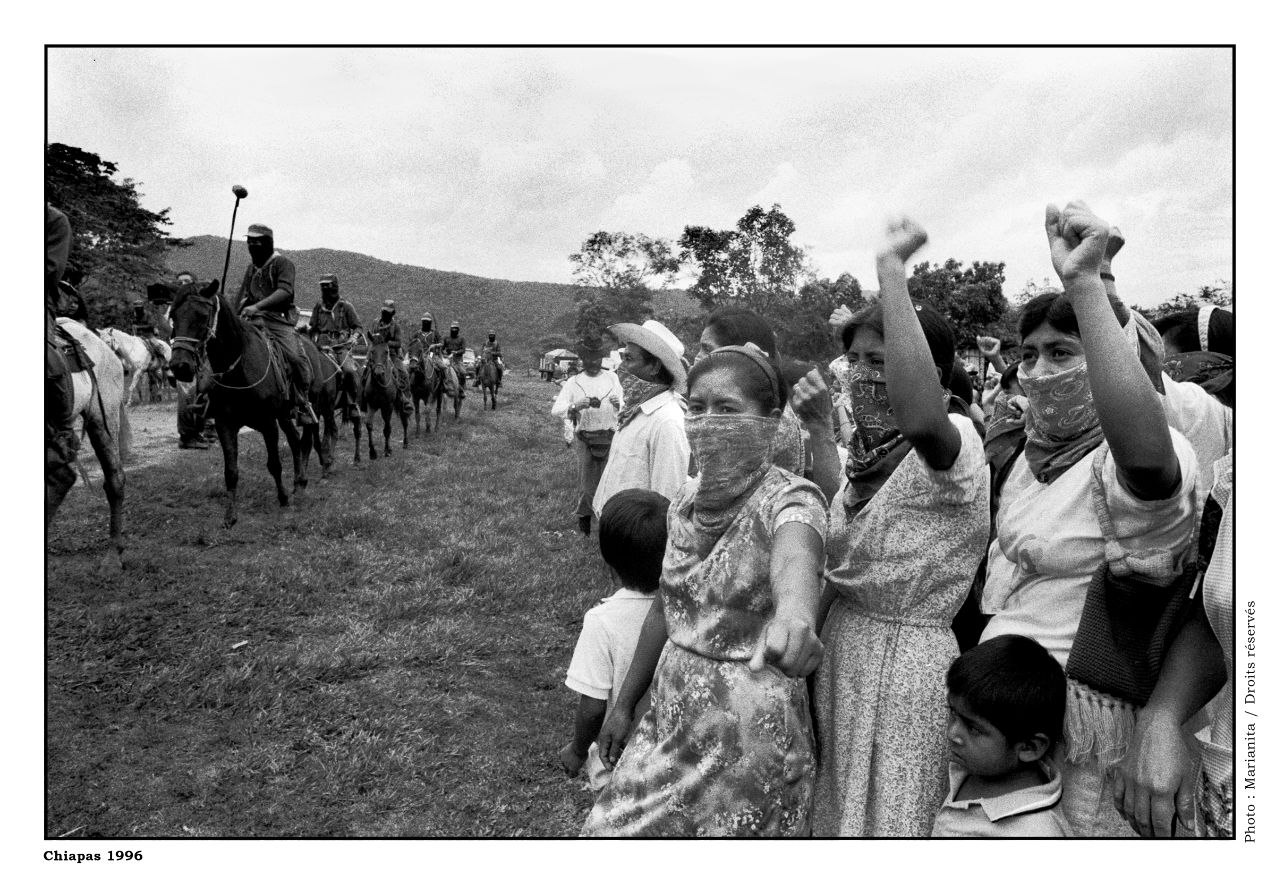 Il y a 30 ans, de l’autre côté de l’Atlantique, depuis les montagnes blessées de la forêt Lacandon, dans le sud d’une géographie que nous appelons le Mexique, après dix ans de préparation clandestine, émergeait des villages du Chiapas, au Mexique, un « ya basta » vibrant d’espoirs, clamé par des femmes et des hommes, pour la plupart paysan.ne.s indigènes. Dans la forêt et les montagnes, sur des terres récupérées, illes ont édifié des communautés autonomes, ont créé des écoles, des cliniques, des coopératives et ont appris à se gouverner collectivement SANS rien attendre de l’État et malgré le harcèlement de milices paramilitaires. L’autonomie zapatiste est une expérience de lutte unique contre le système capitaliste, patriarcal, raciste et colonial.